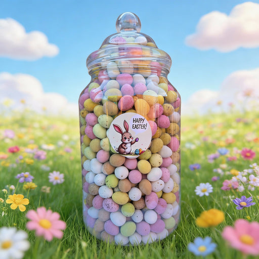 Indulge in a nostalgic treat with our Victorian-style Sweet Shop Jar, packed with approximately 750 creamy milk chocolate mini eggs. Perfectly retr...