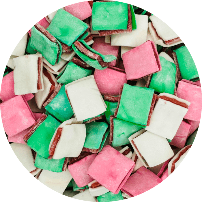 Born from the iconic black and white mint sandwich, these vibrant new bites take nostalgia and twist it into something daringly delicious. At the heart of each bite lies a juicy, red, almost liquorice-like centre – bold, fruity, and bursting with flavour. This luscious core is lovingly hugged by two soft, fondant-like layers that melt on your tongue.