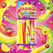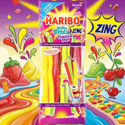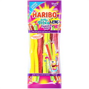 Turn up the tang with Haribo Balla Stixx Zing Flavour Mix – a limited edition burst of fruity fun that packs a serious punch. These soft, chewy stixx are coated in a fizzy sugar zing, delivering an irresistible mix of strawberry, lemon, apple, and cherry flavours in every bite. Sweet, sour, and satisfyingly chewy, each colourful stick is loaded with bold taste that keeps your taste buds buzzing. Perfect for sharing (if you can resist), this 140g bag is your go-to for a lively, lip-smacking treat.