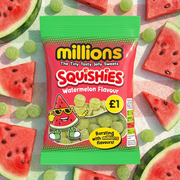 Dive into a burst of juicy refreshment with Millions Squishies Watermelon Bag 100g. Taking the much-loved tiny Millions sweets and transforming them into irresistibly soft squishies, these jelly treats are packed with a bold, mouthwatering watermelon flavour that delivers sweetness in every bite.